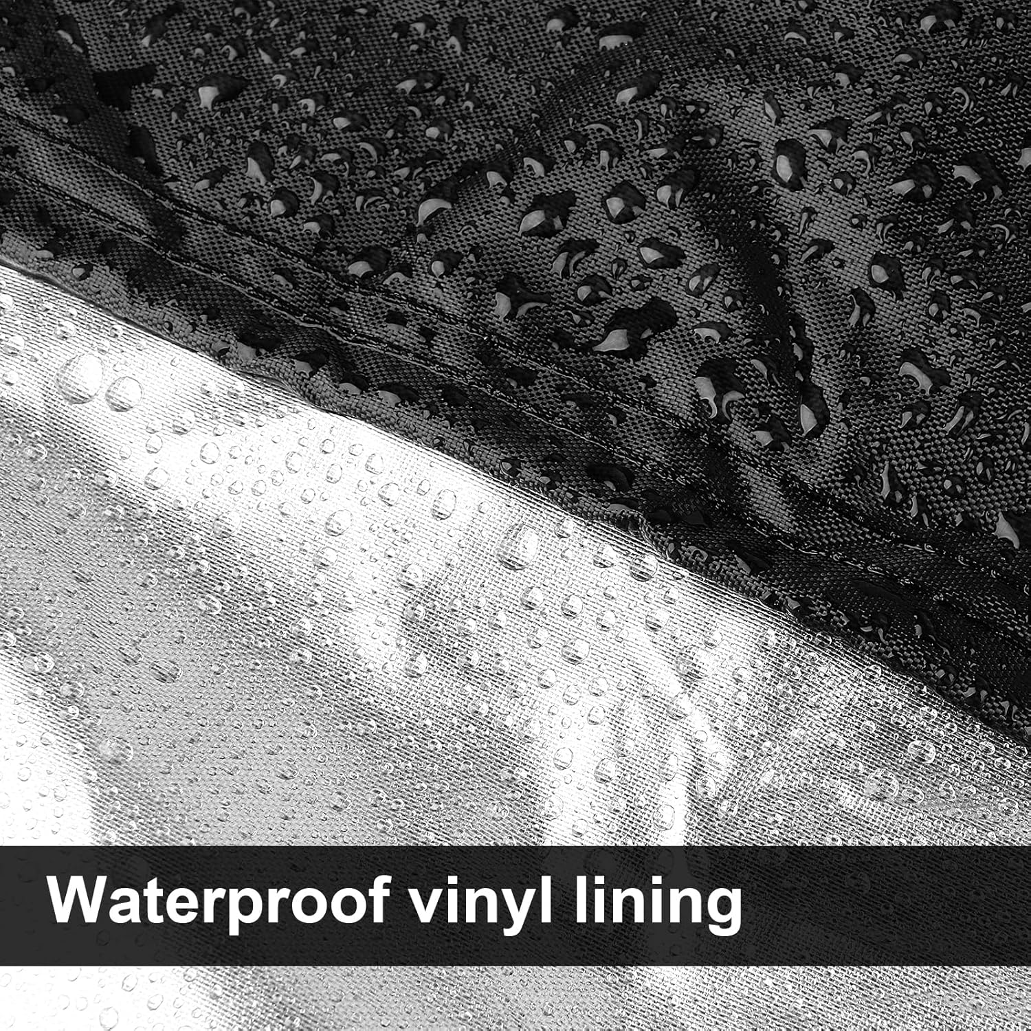 - USER-FRIENDLY DESIGN: The dustproof grill cover has two handles for taking off easily. And the design of the air vents on the side can make sure your gas grill would not go moldy easily.