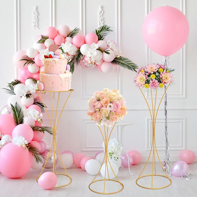 - PERFECT FOR MANY OCCASIONS - The gold metal plant stand set is elegant and luxurious, which makes it an ideal decoration for weddings, table centerpieces, road signs, birthday parties, anniversaries, and ceremonies. At the same time, it can also be used for decoration of daily occasions, such as living room, bedroom, fireplace, office, formal dining room, etc. You can also place different decorations on the vase stand according to different occasions or themes.
