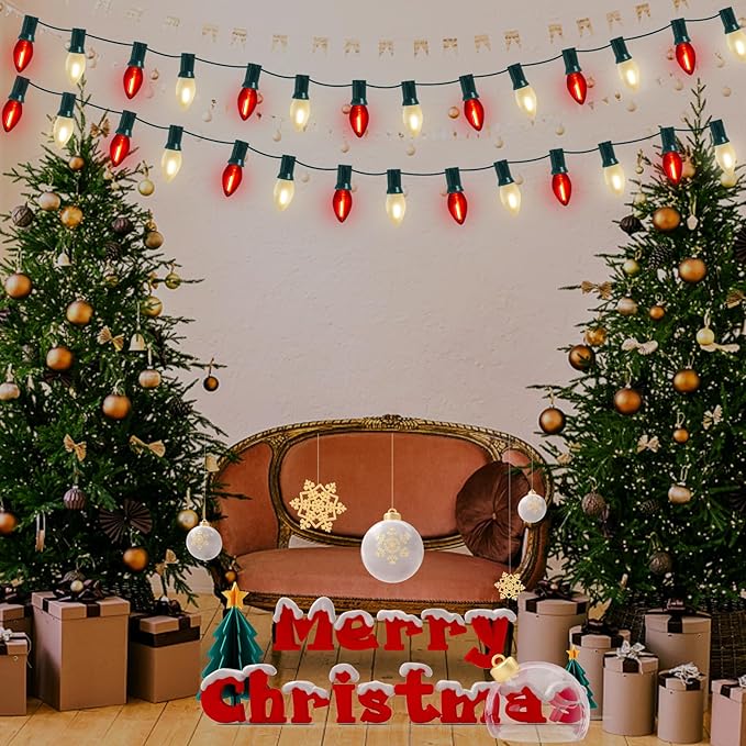 - π Versatile Application: Multicolor christmas decorations lights glow a warm white lights, retro Christmas light string is dimmable, lights dimming requires a dimmer. c7 led christmas lights can be used both indoor and outdoor, such as the bedroom, bar, window, Christmas tree, party, wedding, window, holidays, festivals, shows, restaurants, hotels, shopping centers, patio, or porch, pathway, roofline decorations and lightings