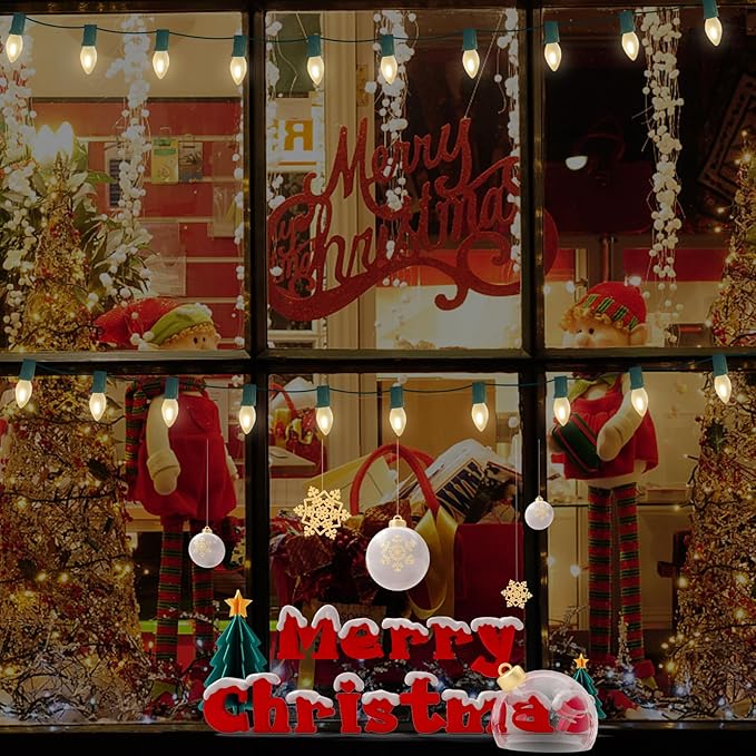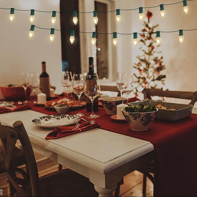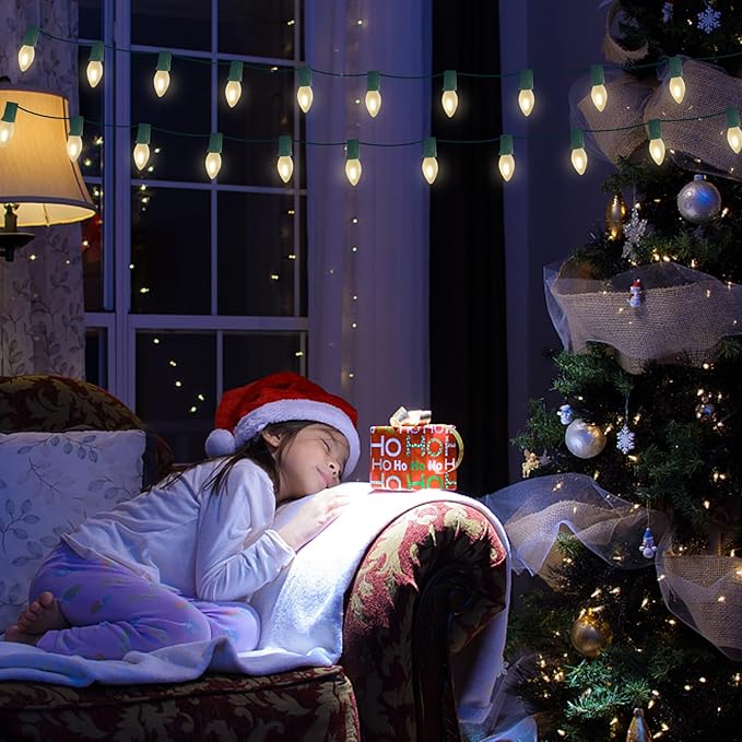 - π Durable and Long-Lasting: Plug in christmas lights outdoor is made of shatterproof and waterpoof led frosted white bulbs, The soft, frosted finish on the C7 LED bulbs provides a gentle, ambient glow that's perfect for creating an enchanting atmosphere. Long lifespan up to 30,000 hours. led frosted white patio lights suitable for both indoor and outdoor use, our C7 LED string lights are built to withstand the elements, making them a durable choice for year-round decoration.