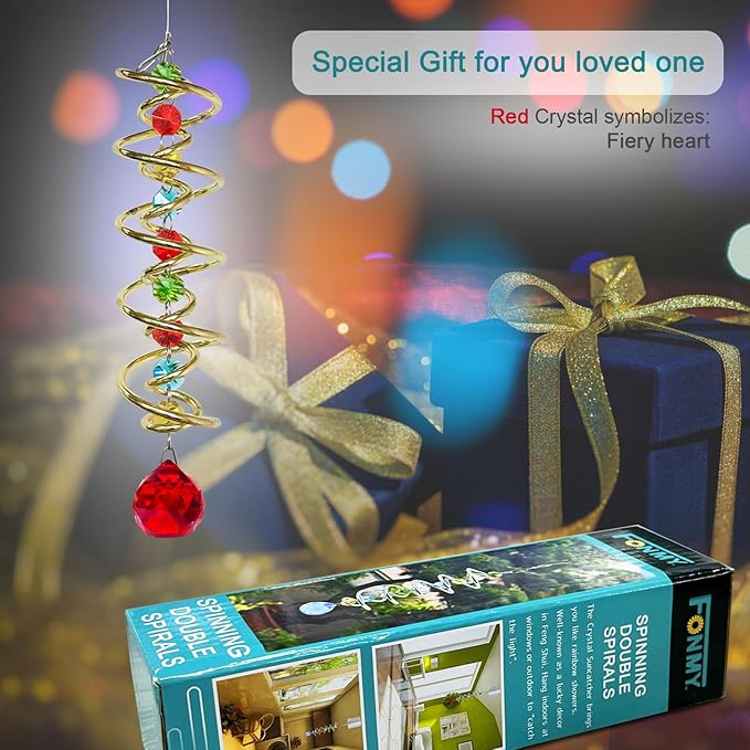 - 【HIGH QUALITY】:Made of stainless steel wire wilth golden color plating and crystal material, specail double structure spiral tail w/ solid red color K9 crystal glass ball and raibow color chain crystals , promised good weather resistant and amazing decoration. All FONMY crystal ball made of top crystal glass material with finely crafted, high clarity and cast beautiful rainbows, could turn the sun's rays into many rainbows.