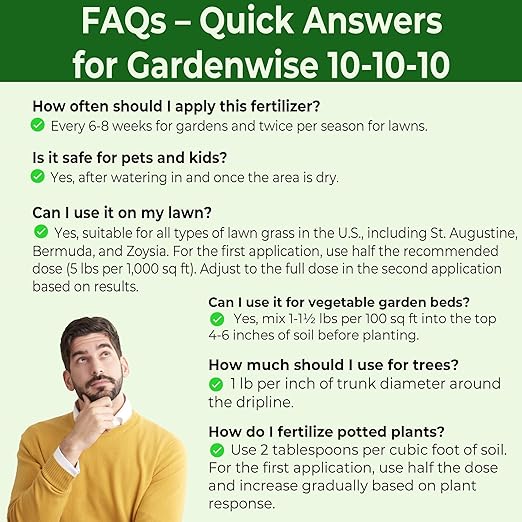 - ๐ฟ Balanced 10-10-10 Granular Fertilizer for Outdoor & Indoor Plants: All-purpose plant food with 10% Nitrogen, 10% Phosphorus, and 10% Potassium. Perfect for outdoor vegetable gardens, fruit trees, evergreens, shrubs, lawns, and flowers. Also great for potted plants and indoor gardening. One solution for all your plant needs!