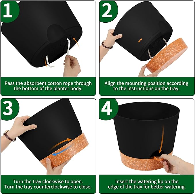 GARDIFE 12 inch Plant Pots, planters, Self Watering Pots, Large Plastic Flower pots with Deep Reservior and High Drainage Holes for Indoor Outdoor Plants and Flowers, Black