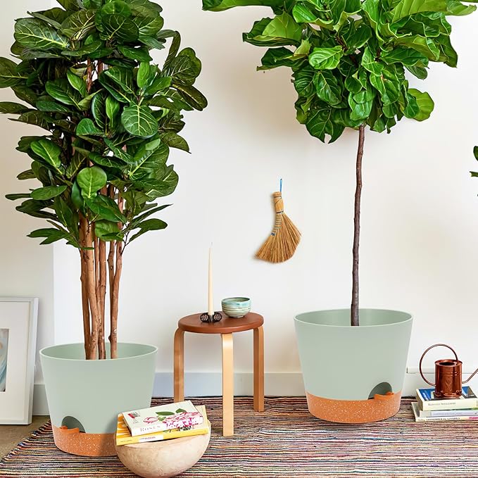 GARDIFE 12 inch Plant Pots, planters, Self Watering Pots, 2 Pack Large Plastic Flower pots with Deep Reservior and High Drainage Holes for Indoor Outdoor Plants and Flowers, Green