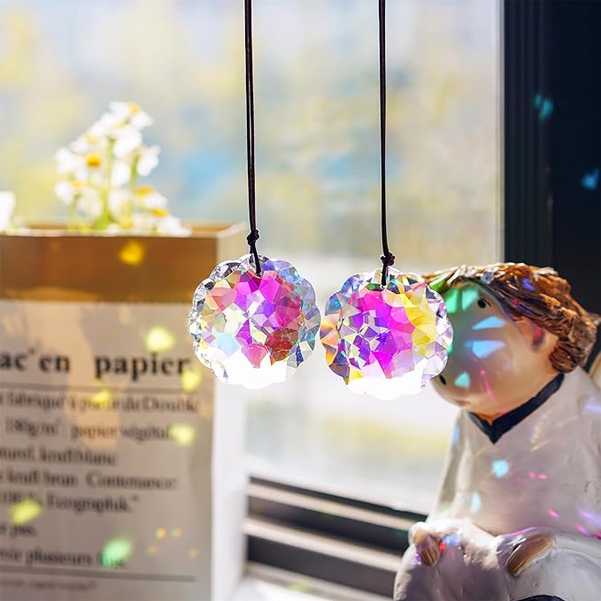 - Material:This Datura Shaped crystal prisms suncatchers pendants are made with K9 crystal.Package includes 2pcs. They will create the most beautiful rainbow when the sunlight hits the pendants