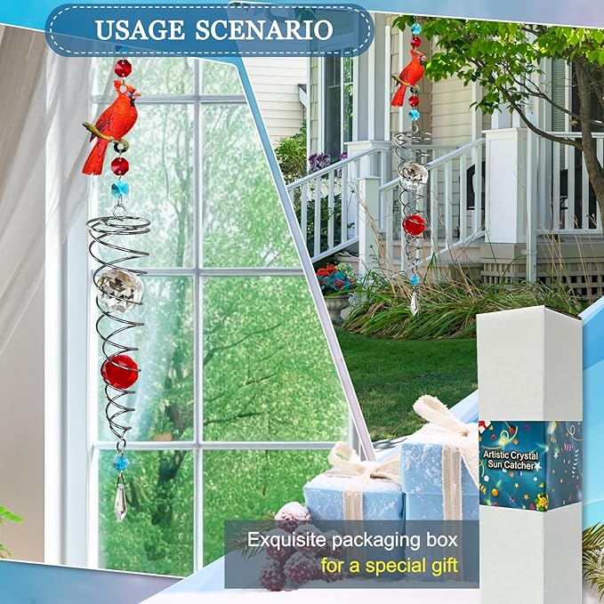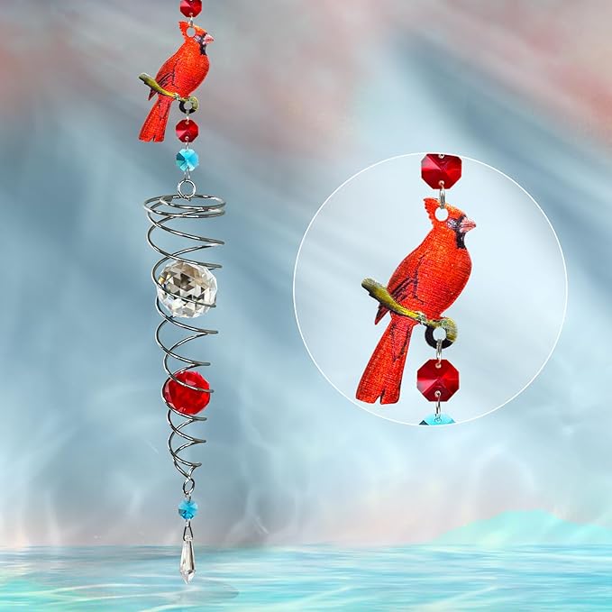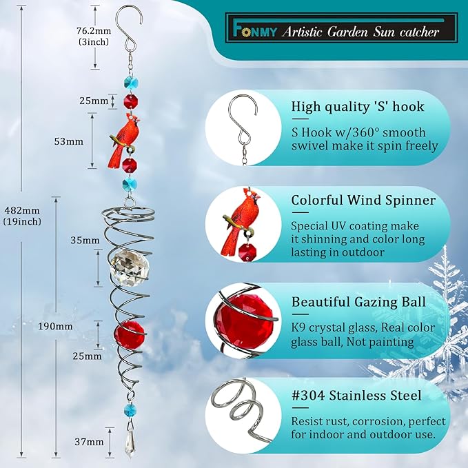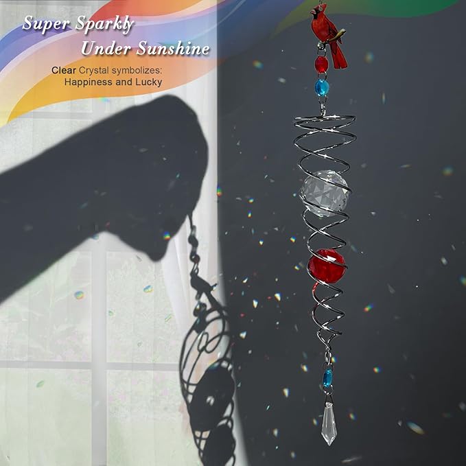- 【HIGH QUALITY】:FONMY cardinal Crystal wind spinner sun catcher is made of stainless steel wire with K9 crystal material, special double structure spiral tail w/ solid color K9 crystal glass ball,promised good weather resistant and amazing decoration. All FONMY crystal ball made of top crystal glass material with finely crafted, high clarity and cast beautiful rainbows, could turn the sun's rays into many rainbows.