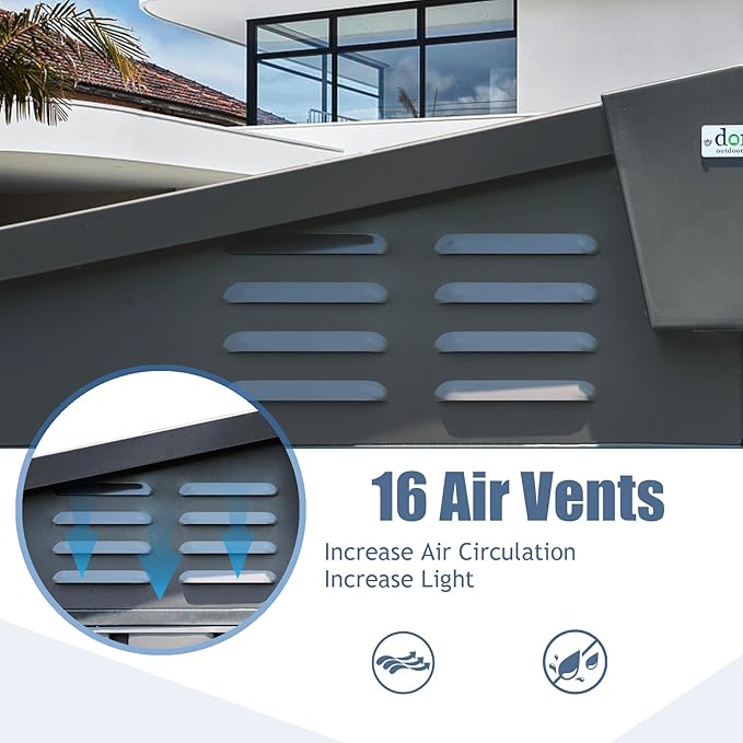 - πVENTILATION DESIGN: 16 built-in vents at the top and double doors are designed to both increase air circulation and light, allowing you to keep items in the shed dry and avoid mold.