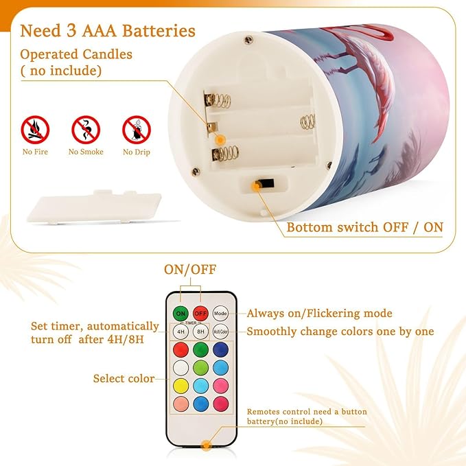 Flamingo Flameless Candles with Remote Control and Timer, Adjustable Brightness Long Lasting Battery Operated LED Pillar Candles for Indoor Outdoor Party Home Decor, 2 Pack