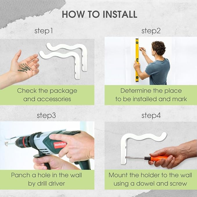 - EASY INSTALLATION: With the included hardware and easy straightforward instructions, mounting our plant hanging bracket for wall is a breeze. Our hook for plants comes come with 2 hooks, 4 screws, 4 dowels and 4 self-adhesive screw covers for installation.