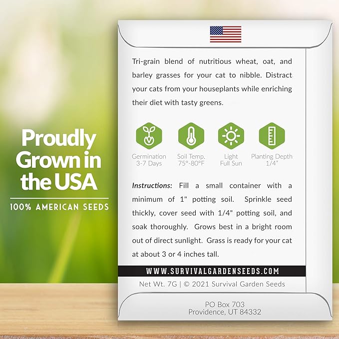 Cat Grass Seed for Planting - 3 Packets with Instructions to Plant & Grow Greens for Your Pet Indoors or Outdoors in a Container or Garden - Non-GMO Heirloom Variety - Survival Garden Seeds
