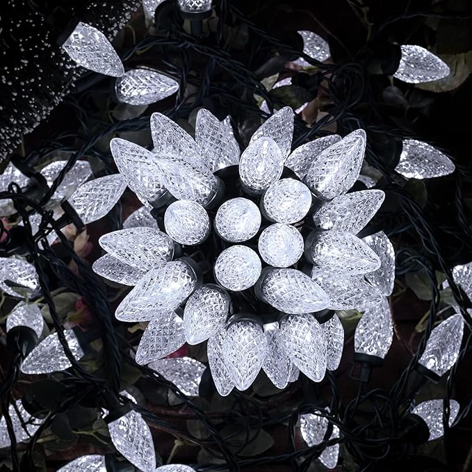 - 【 Brilliantly Bright Glow 】- These lights feature large, faceted C9 bulbs made from durable polycarbonate, offering good brightness, color saturation, ruggedness and reliability. Built-in SMD LED creates vivid lighting effects; the diamond facet hole design prevents stagnant water. Bulbs with vibrant colors will never fade, chip or crack