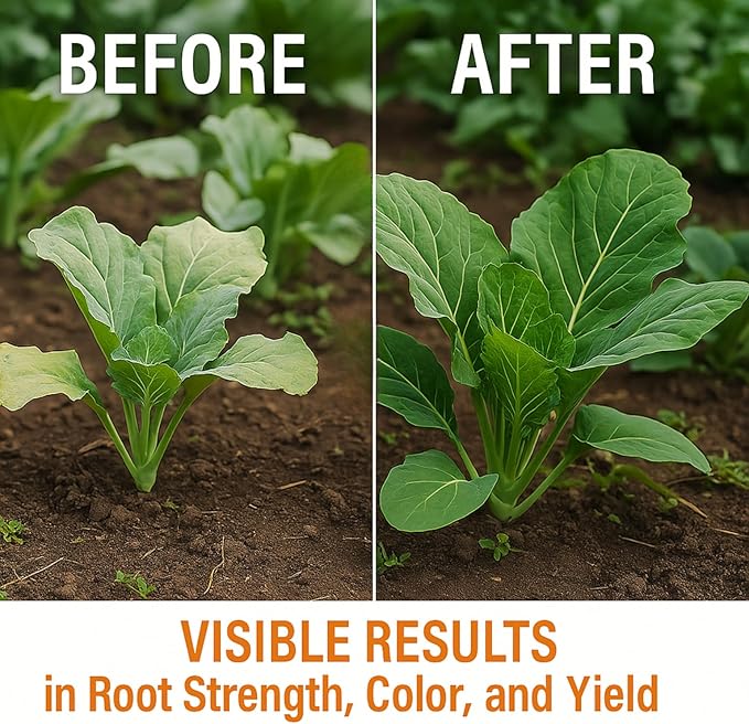 - Feeds from the Roots Up – Encourages strong root systems and improves overall soil health, leading to stronger, more resilient plants.