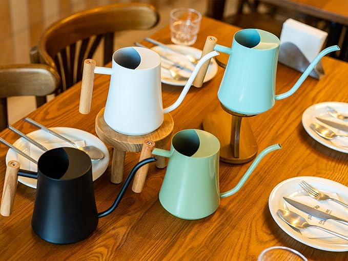 - 【COMFORTABLE WOODEN HANDLE】Our indoor watering can has a round comfortable wooden handle. It is easy to grasp and won't hurt your hands. Also, our stainless steel watering can has a built-in open-top design, which is convenient for refilling water.an exquisite and light body design, our watering pot serves as a decoration.