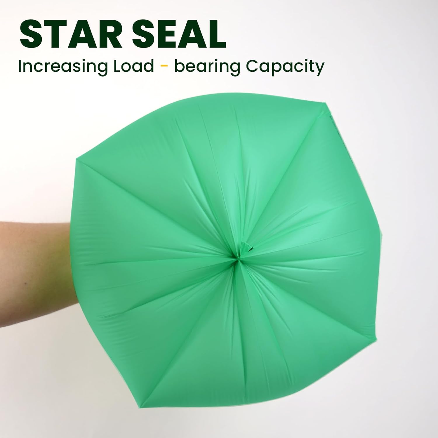 - [STRONG DURABLE & CARRY WITH CONFIDENCE ]The compostable Bags are made from plant starches and contain NO polyethylene. Bags are durable, nontoxic, easy to use and great for the environment.Our small trash bags 4 gallon is durable to prevent rips and tears. It allows a snug fold over the trash or compost bin rim to prevent slipping and ensure the compostable bags stay in place and the triple ply prevents leaks and allows you to carry them with confidence. The compost bin bags makes your busy kitchen composting jobs easy.