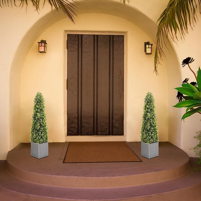- Beautify Your House with Artificial Plant Outdoor. Artificial topiary cone can be widely used in wedding, party, balcony, porch, reception, backyard, living room, patio, office. Best gift choice for someone who likes greenery