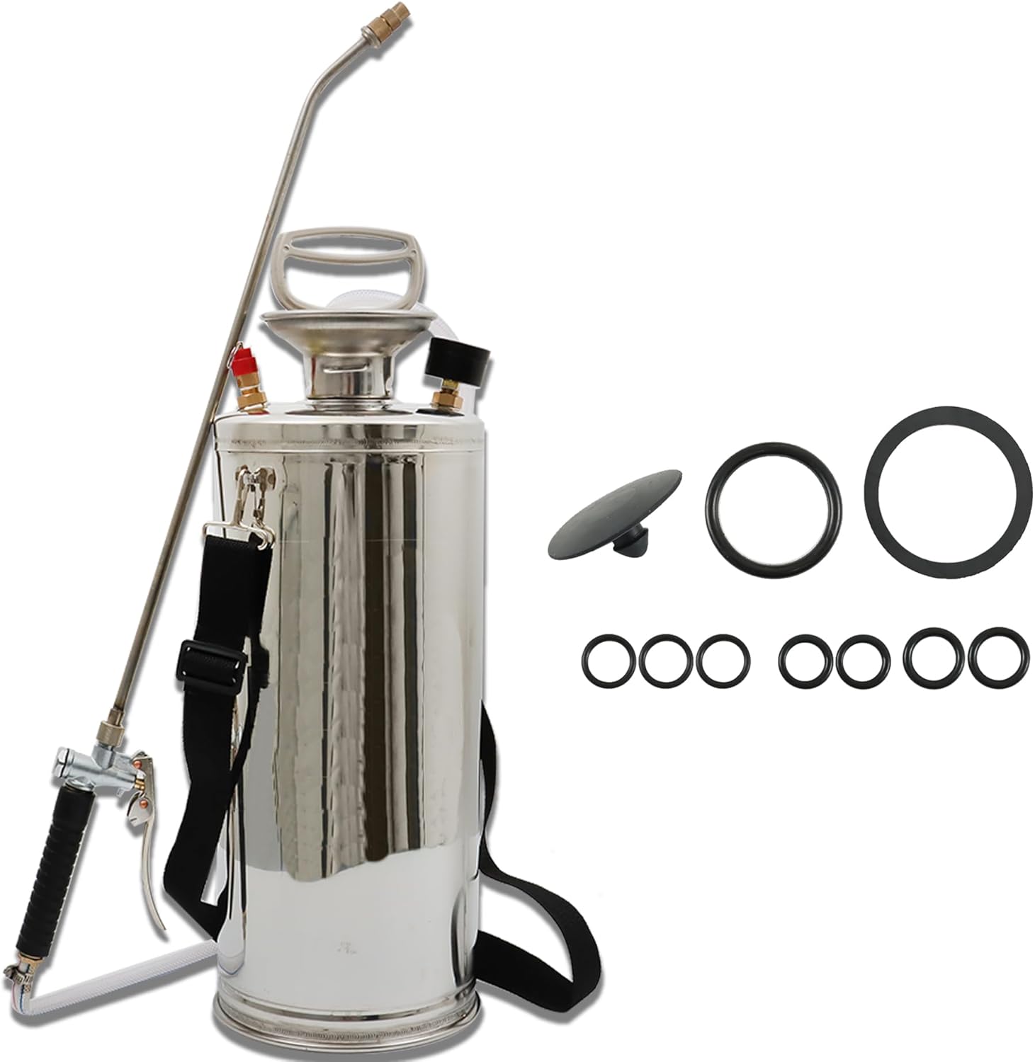 2 Gallon Stainless Steel Sprayer Hand Pump Sprayer with Pressure Gauge Safety Valve Adjustable Nozzle for Gardening Lawn and Cleaning