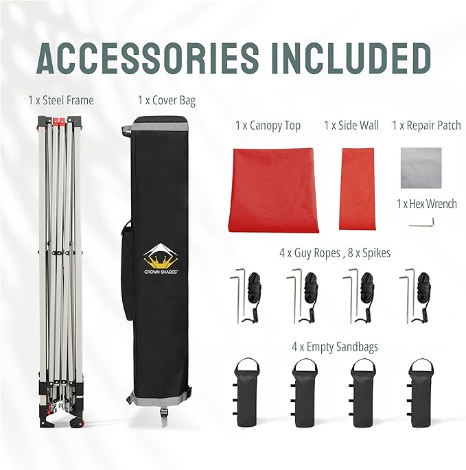 CROWN SHADES 12x12 Pop Up Canopy Tent Instant Commercial with 150D Silver Coated Fabric Including 1 Removable Sidewall, 4 Ropes, 8 Stakes, Weight Bags, STO 'N Go Bag, Red