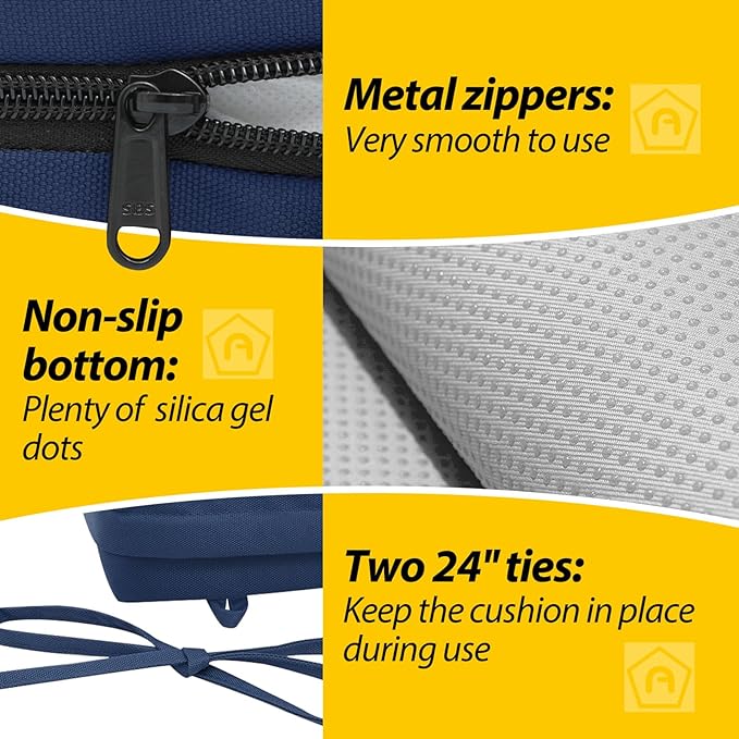 - Wide Use & Tips: These outdoor dining chair cushions fit pools, patios, balconies, decks, backyards, and gazebos. Foam inserts and covers are packed separately in bags and placed in one box—check all parts. Easy assembly required