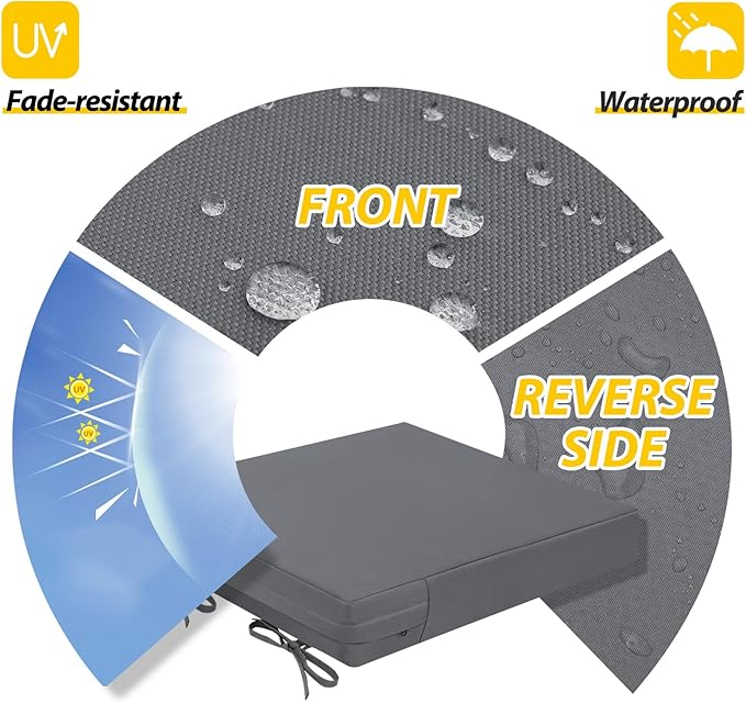 - Waterproof & Removable Cover: Durable, breathable polyester with a waterproof coating, UV protection, and fade resistance for lasting outdoor use. The zippered cover allows easy cleaning and replacement, with hidden zippers for a seamless look
