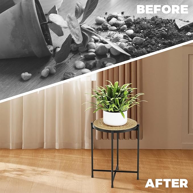 - Natural Material: This plant holder is made of iron, and the surface of the plant tray is made of natural straw plait. The boho plant stool will add vitality to your living space and bringing you a feeling of natural comfort.