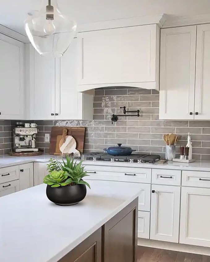 Fake Plants Artificial Succulents in Pots Faux Succulent Arrangement Potted Plant with Black Ceramic Pot for Home Decor Modern Office Desk Bathroom Shelf Living Room Indoor & Outdoor Decoration