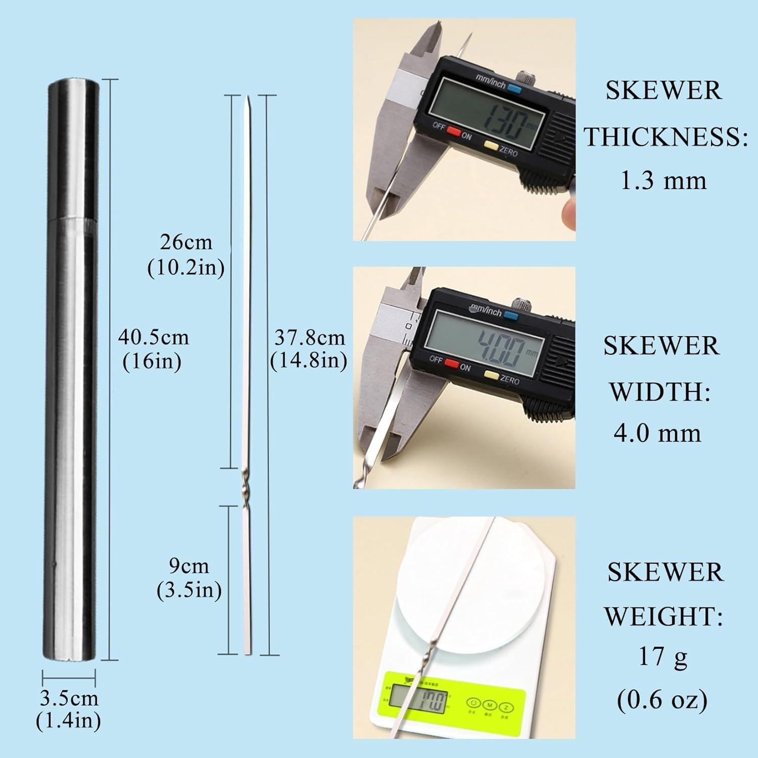 - 【Widely Used】These skewer sticks are versatile and can be used for various dishes including shish kebabs, Brazillian-style barbecue, and more. They are perfect for skewers for grilling, whether it's in your backyard, camping, by the poolside, or even taken to parks, outdoor recreation, and road trips.