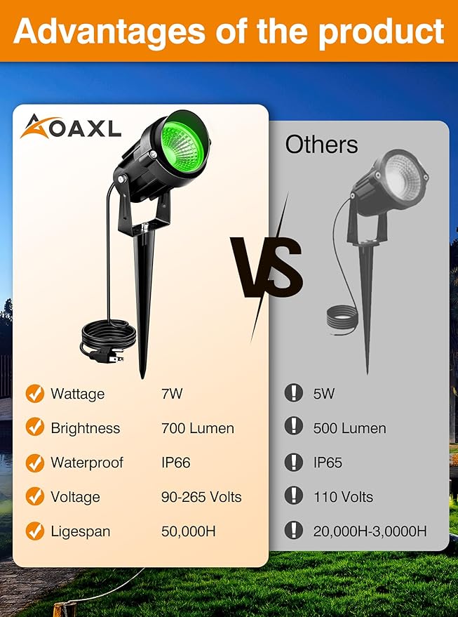 - ๐[ใUltra Bright Green Landscape Lighting] Ultra bright landscape lights with COB beads. It is lighter than normal led landscape lights which perfectly meets your normal lighting needs, Perfect for decorating your yard, trees, house, fence, wedding, Halloween, Christmas.