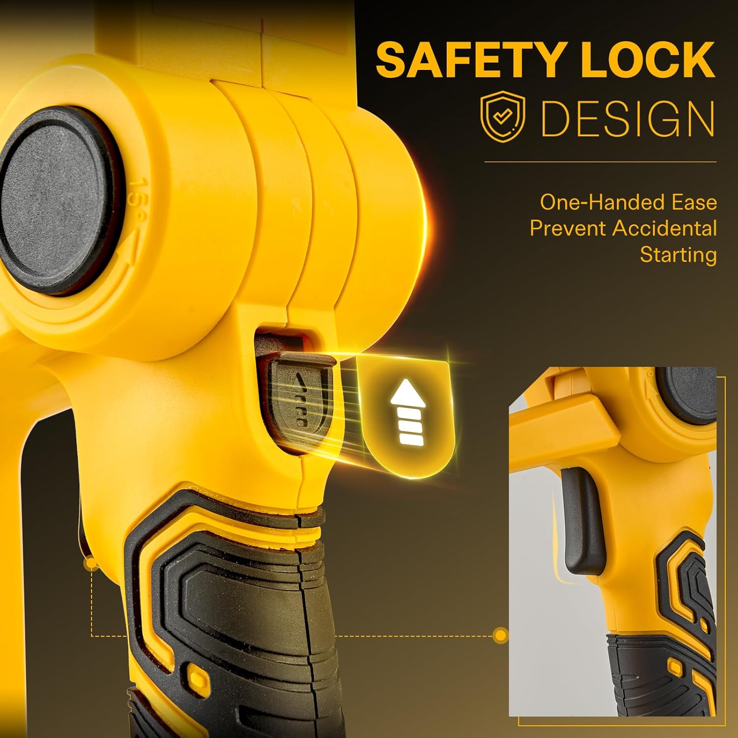- 【DOUBLE SAFETY LOCK】The sakerplus hedge trimmers cordless with battery is equipped with safety features, including blade guards and a safety switch, to prevent accidental injuries during use. The upper trigger safety lock-out ensures accidental starting prevention—simply push the trigger lock and press the trigger simultaneously to start the shrubbery trimmer. Switching blades of sakerplus bush trimmer cordless is easy, just press the buttons on both sides.