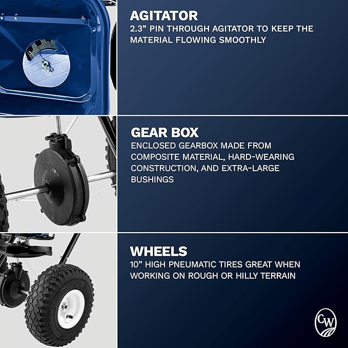 Charles Walters Equipment CW1500 Estate Style Broadcast Spreader for Spreading Fertilizer and More on Lawns, Sidewalks, and Driveways, 65lb Capacity, 31" x 32"