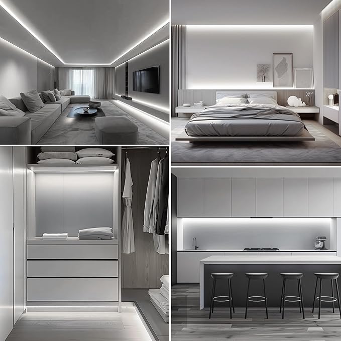 - INDOOR LED STRIP LIGHTS: Our LED light strip can be used for indoor decoration, can be installed on the ceiling of the living room, bedroom, and bathroom, stairways, bookshelf, under the cabinet of the kitchen or other room decoration.