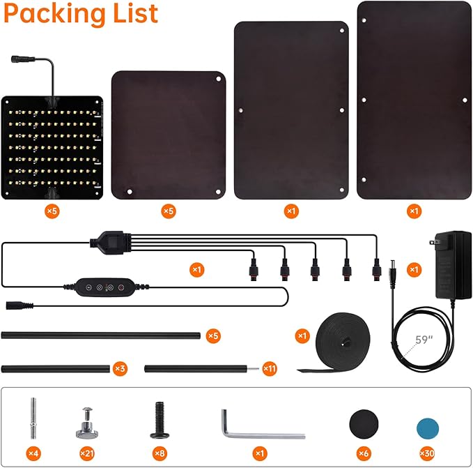 - 【3/6/12 Timing & Heat Dissipation】Automatic cycle timing (3/6/12 hours), the system will automatically turn off and on after the set time, ensuring your plants receive optimal care even when you're away on vacation or busy with work. The ultra-thin grow light panel is designed with aluminum material, providing excellent cooling performance, thus eliminating concerns about overheating