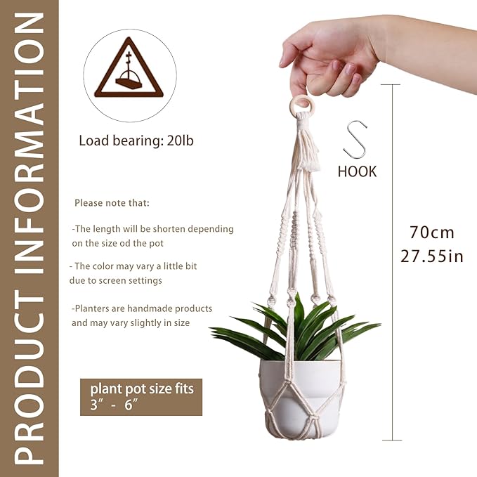 - SERVICE & HIGH QUALITY - You can get white plant hangers and hooks. If you have any questions before or after the purchase, feel free to contact us. Please kindly note that the length will shorten depending on the size of the pot, enjoy your life with this product now