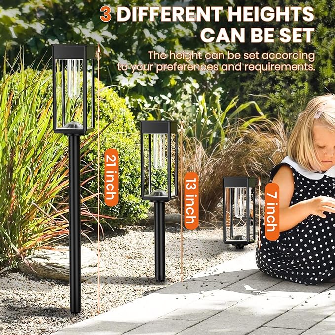 - All-Weather Durability: With their IP65 waterproof rating, these solar garden lights are built to withstand various weather conditions, ensuring long-lasting performance even during rainy or snowy days.