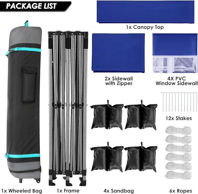 - ☀【Package Includeds】:1x 10x20 Folding Frame, 1x Top cover, 6 x Sidewalls ( 2 Sidewall with Zipper and 4 Sidewall with Window ), 6x Sandbags, 12x Stakes, 6x Ropes, 1x Roller bag, 1x Manual. If you have any questions, please contact us.