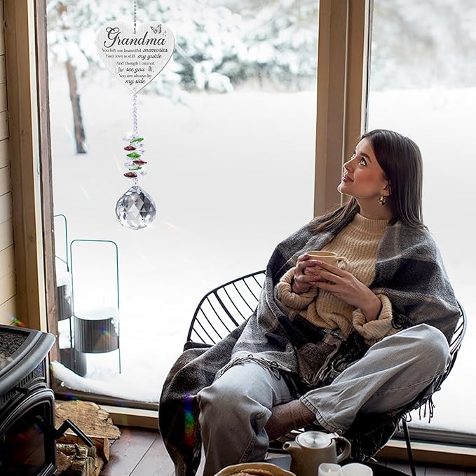 - Suncatchers for Windows Hanging: The memorial hanging crystal suncatcher can be hung anywhere. The perfect commemorative gift does not require any assembly, just peel off the transparent protective film on the stainless steel plate and you can use it.A small, thoughtful gift can speak volumes and show that you care and are thinking of someone who has lost a grandmother at a difficult time, as well as providing something tangible that can be kept and treasured forever.