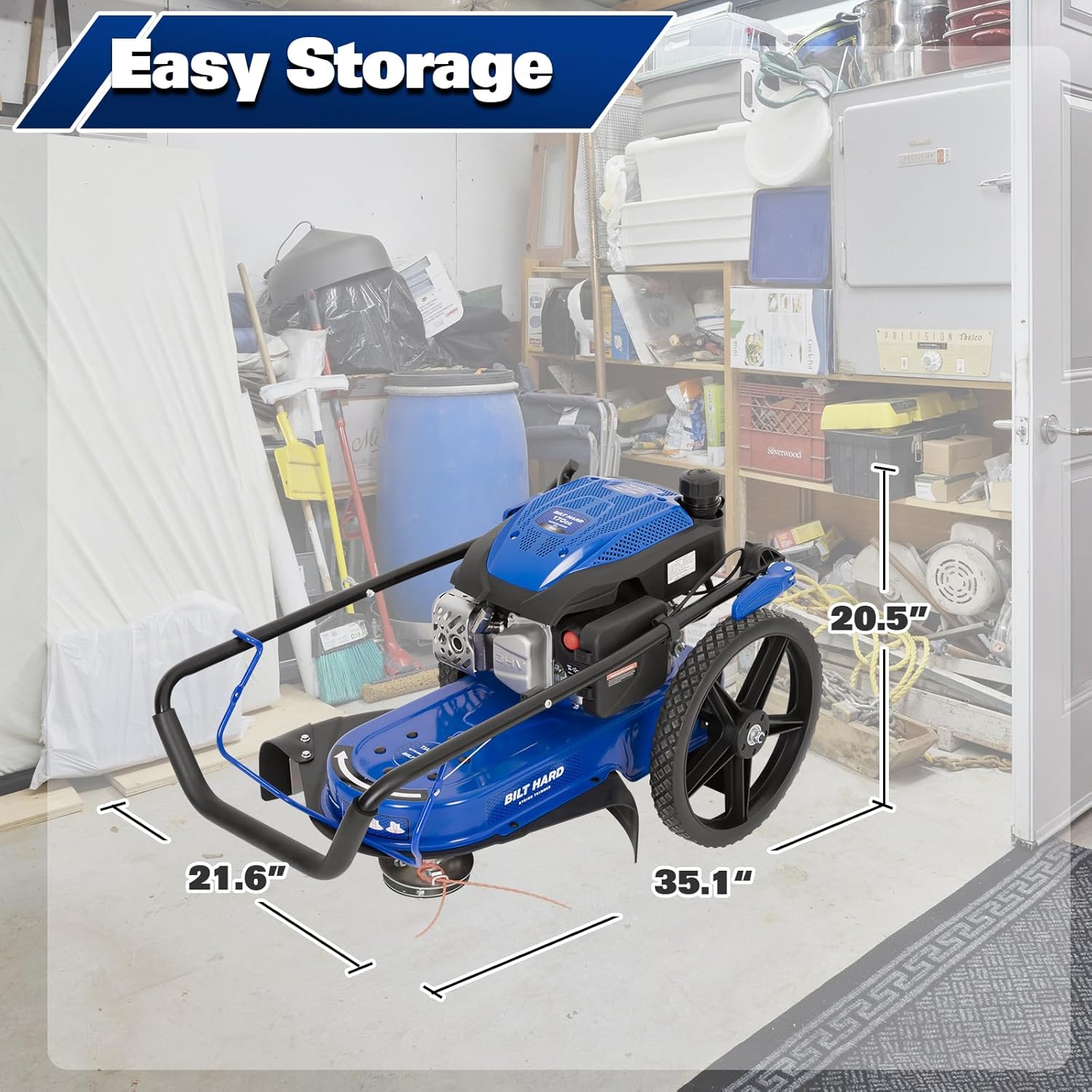 BILT HARD Walk Behind String Trimmer, 170cc 4-Cycle Gas Brush Hog Mower, 22 Inch Cutting Diameter, Push Weed Eater with 14 Inch Flat Free Wheels, Brush Cutter for Farm, Lawn, Yard