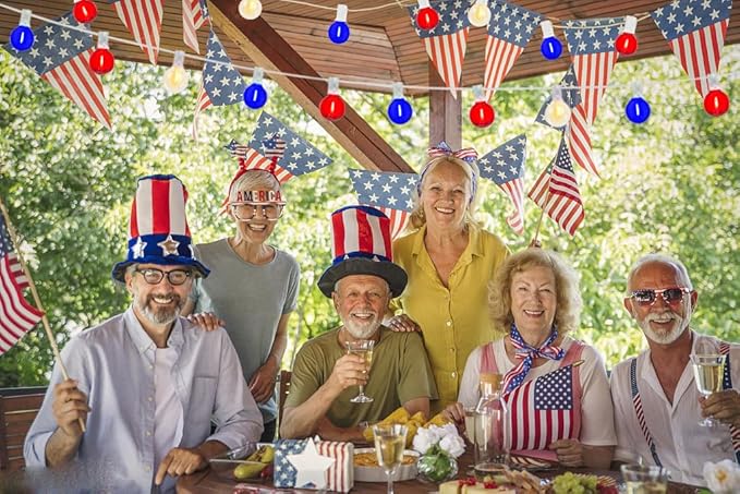 - ๐ฎ๐๐๐ฌ๐ฒ ๐ญ๐จ ๐ข๐ง๐ฌ๐ญ๐๐ฅ๐ฅ๐๐ญ๐ข๐จ๐ง๐ฌ: Red white blue patriotic lights sokects with a hook and easy installation. Show your patriotism with this July 4th decoration that can be used for Independence Day, Memorial Day, and other festivals. Plug in bistro lights and enjoy a good festive atmosphere.