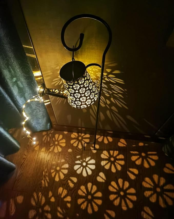 - 【Charming Garden Decoration Lights】: 2 watering can lights will be a charming addition to your patio at night, emitting bright lights that looks like strings of shining stars pouring out of a watering can, casting beautiful patterns on the ground for a romantic atmosphere. You'll love them when they light up your garden.