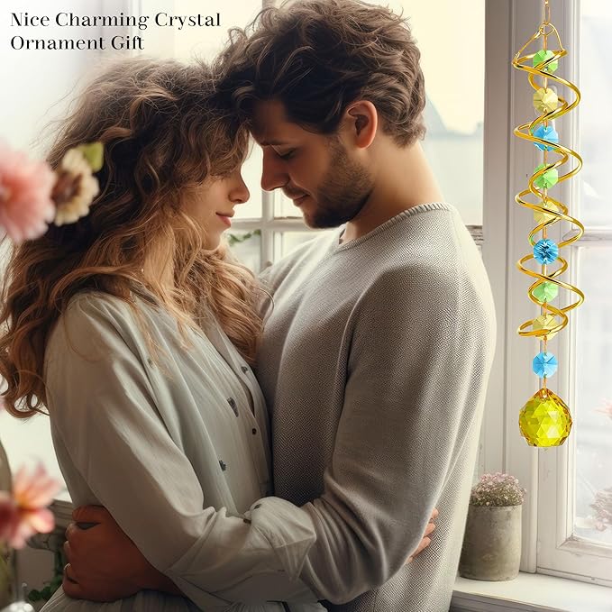- Vibrant Yellow Crystal Glass Ball: Adorned with a 1.18 inch yellow crystal glass ball, this crystal suncatcher adds a pop of enchantment to any garden or patio.You can also add a motor(not include) to let the spiral to spin ,while spiral tail rotating (it canโt spin by itself)