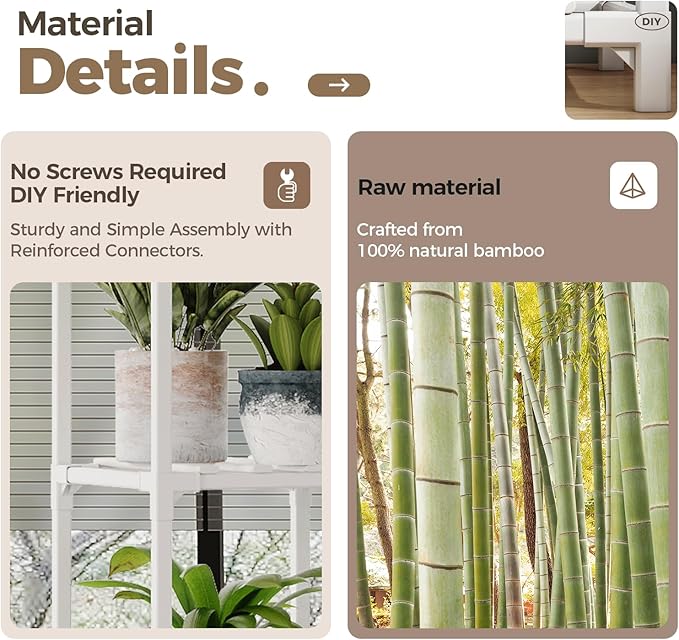 - Bamboo Plant Stand:Crafted from 100% natural bamboo, it serves as a home decor piece, adding a touch of style and vibrancy to your living space. it brings a natural touch to different areas of your life.