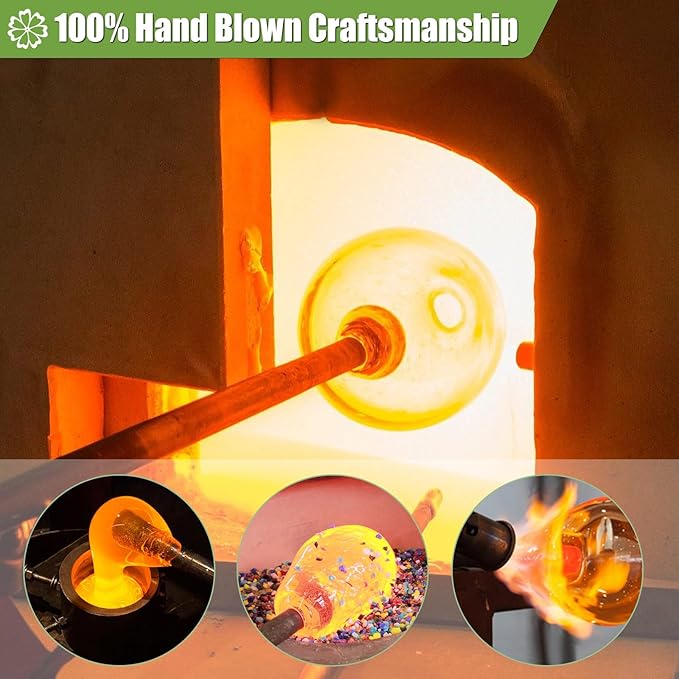 - Hand Blown: Handmade glass feeder is thick, durable, and unique. Bright color attract more hummingbirds to your garden. Equipped with quality ant moat hook for hanging, premium metal cap and plastic base with leak-proof edge, no worries about messy spills