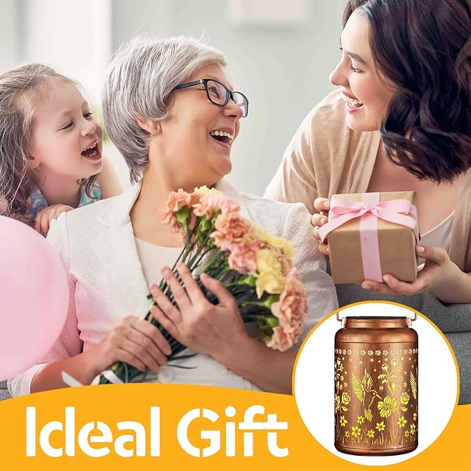 • Graceful Decorative Design:The retro appearance, with gold copper color and hollow out metal veneer, the solar outdoor lanterns casts bright and warm light in darkness, accompanied by gorgeous and graceful hummingbird patterns, adding a beautiful atmosphere to the surrounding environment.