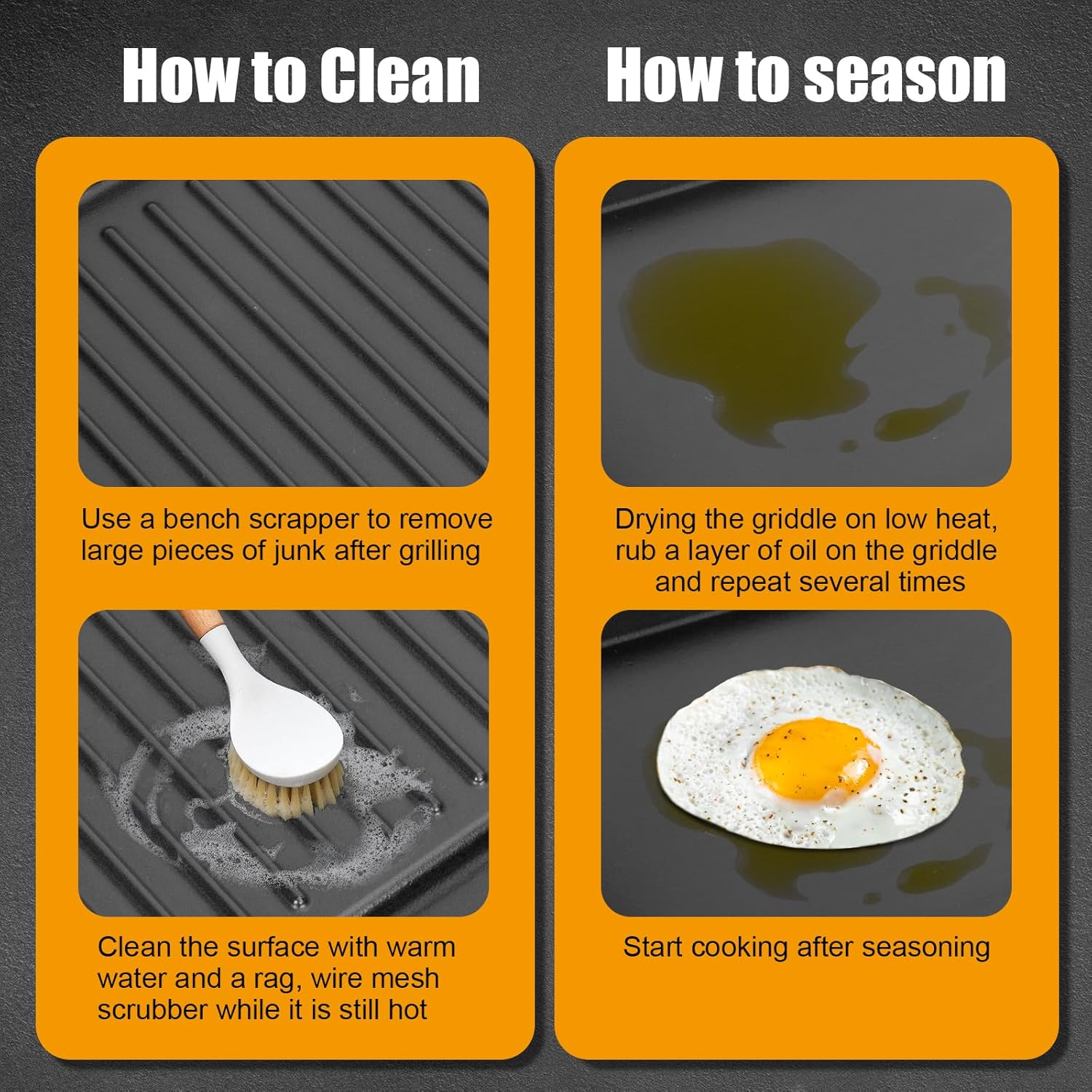 - Tips for Use: Please use a thin layer of grilling spray to avoid any sticking. Give it a little oil before you store it in a dry and ventilated environment which can extend the life of the griddle.