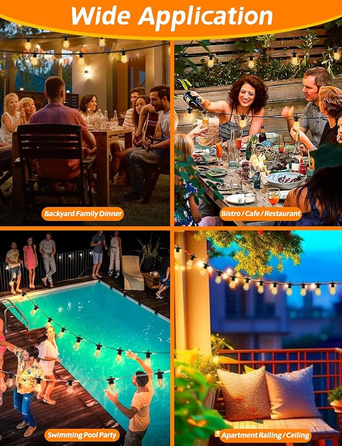 - Special Feature : Dimmable, Energy Efficient, Linkable Outdoor String Lights, Shatterproof, Waterproof