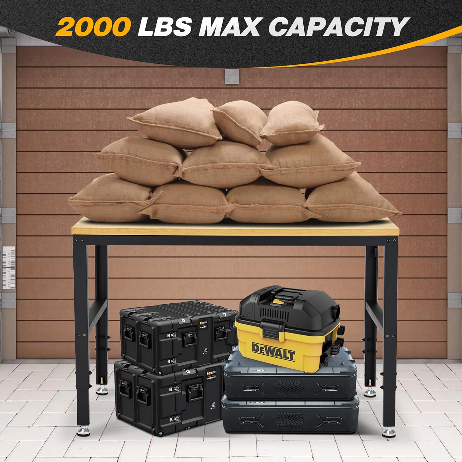 48” Adjustable Workbench,Heavy Duty Wood Work Bench 2000 Lbs Load Capacity,Work Table for Garage, Workshop, Office, Home