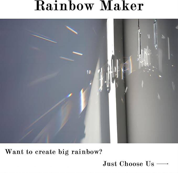 - Rainbow Maker Prisms: 2pcs crystal light catcher are made by hand, size:4.7*1.1in(12*2.8cm),NW:95g/pc. These 120mm large crystal suncatchers will create stunning rainbows when sunlight passes through them, adding a magical touch to any space