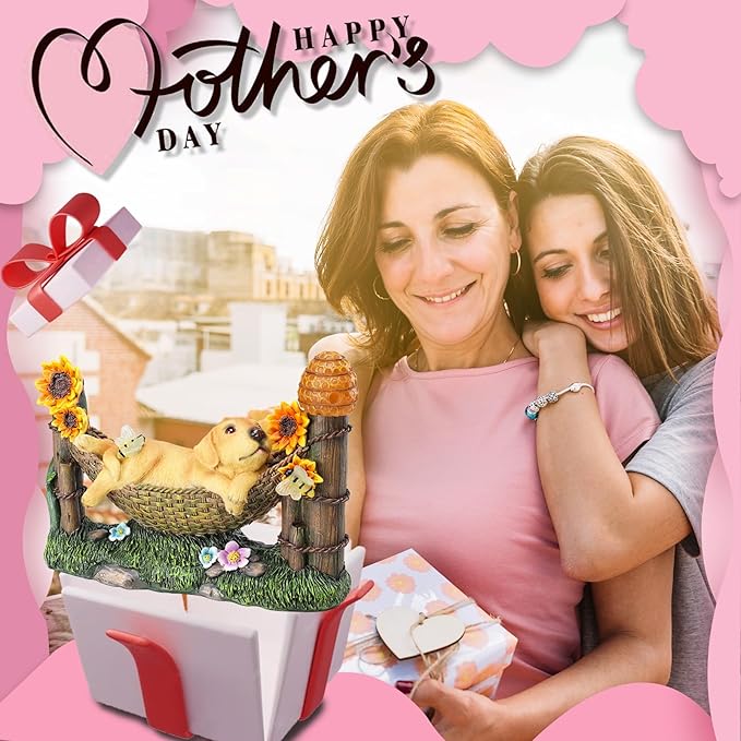 Afirst Solar Garden Outdoor Dog Statues Resin Figurine with Solar Lights Statue Decorations for Lawn, Patio, Balcony, Yard Ornament Mother's Day Gifts,Golden Retriever