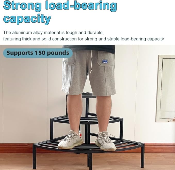 - 🌿【Durable & Stable】Made of aluminum, this stand can bear up to 70 pounds per tier. The triangular support and tight connections add to its stability and ensure it remains steady during use.
