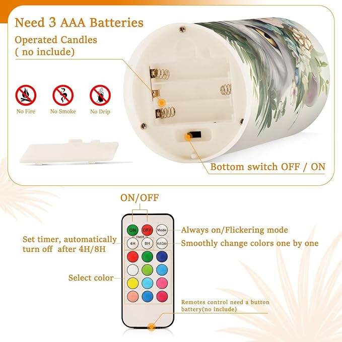 - Convenient Remote Functions: Includes an 18-key remote controller with a timer. You can control these candles remotely when they are placed somewhere difficult to touch. Set 4H/8H timers will save you trouble turning them on/off, they will come back on automatically at the same time every day. Also, you can adjust the light color as you want