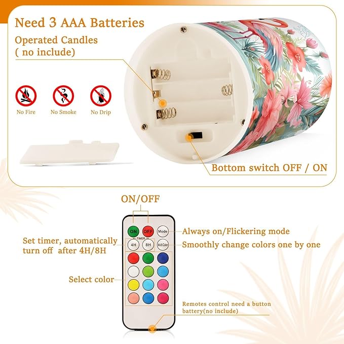 - Convenient Remote Functions: Includes an 18-key remote controller with a timer. You can control these candles remotely when they are placed somewhere difficult to touch. Set 4H/8H timers will save you trouble turning them on/off, they will come back on automatically at the same time every day. Also, you can adjust the light color as you want